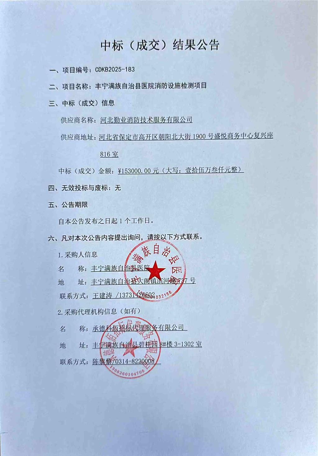 丰宁满族自治县医院消防设施检测项目中标(成交)结果公告