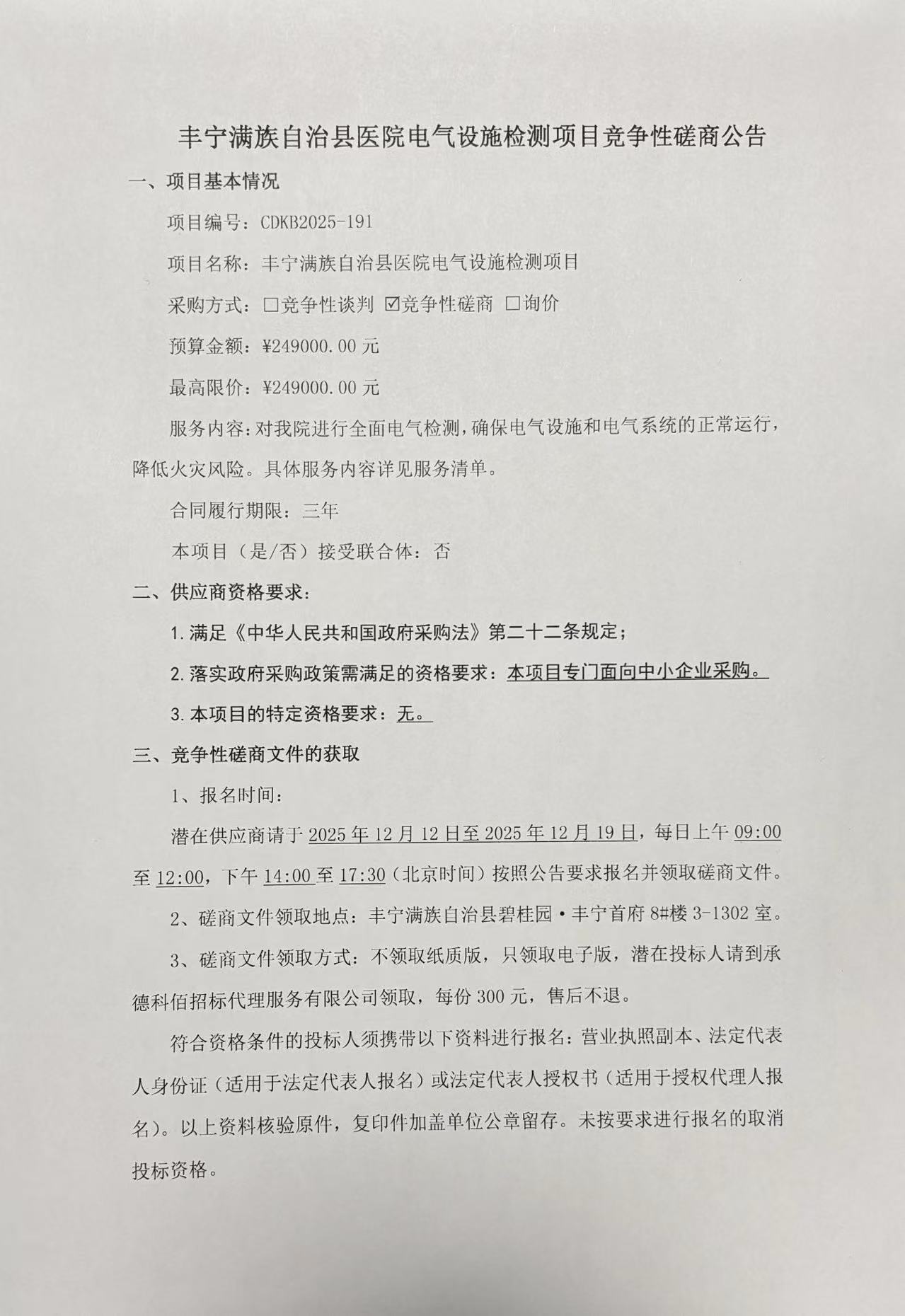 丰宁满族自治县医院消防电气检测项目竞争性磋商公告