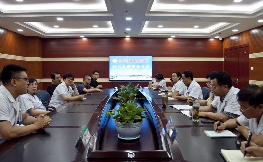 为更好的落实上级文件精神,扎实推进“雨润工程”、“三级医院对口帮扶贫困县医院”的各项工作任务的落实,2018年7月19日医务处组织召开“对口支援----帮扶专家座谈会”。参会的人员有白书臣院长、夏志国副院长、傅国利副院长、梁树军副院长、对口支援的帮扶专家以及对接科室主任等。会议由夏志国副院长主持。