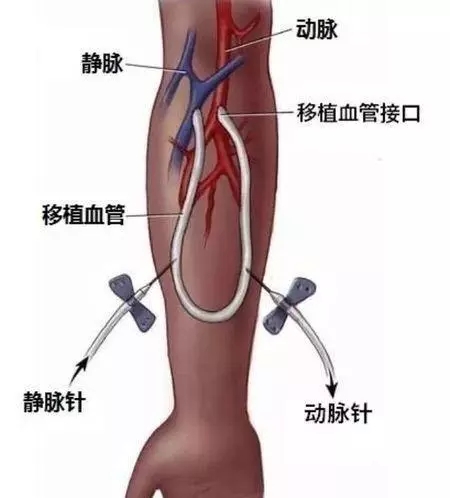 良好的血管通路是完成血液透析治疗的基本保证。当前臂的血管耗竭无法提供血管穿刺部位时,可通过合成的人造血管或生物移植血管建立前臂或下肢移植内瘘。但人工血管的费用很高,使用寿命较短,容易再狭窄,因此护理操作难度较大。此次人造血管穿刺技术的成功说明我院的内瘘穿刺技术又上了一个新的台阶。新技术的开展不仅延长了患者血管通路的试用时间,同时减少长期导管的试用率,为更多血管条件差的透析患者提供了更好的治疗方法,减少了微循环的形成,保证了患者的透析质量。